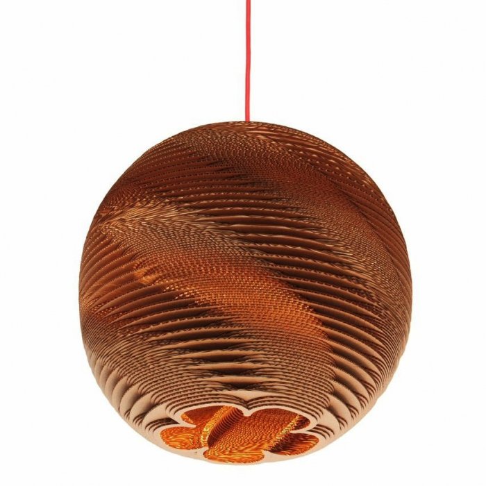 Серия светильников Culle - это яркий представитель современного дизайна. Благодаря передовым инструментам проектирования нам удалось создать столь необыкновенную форму и проработать каждую деталь до самых мелких подробностей. Главной идей создания подвесного светильника Culle 50 послужила структура ДНК. Мы приложили все возможные услилия чтобы воссоздать структуру живой субстанции и попытались дать вторую жизнь материалу, который когда-то был частью природы. Светильник в стиле эко-дизайн сделан из гофрированного картона по специальной технологии и пропитан экологически чистой огнезащитной пропиткой.